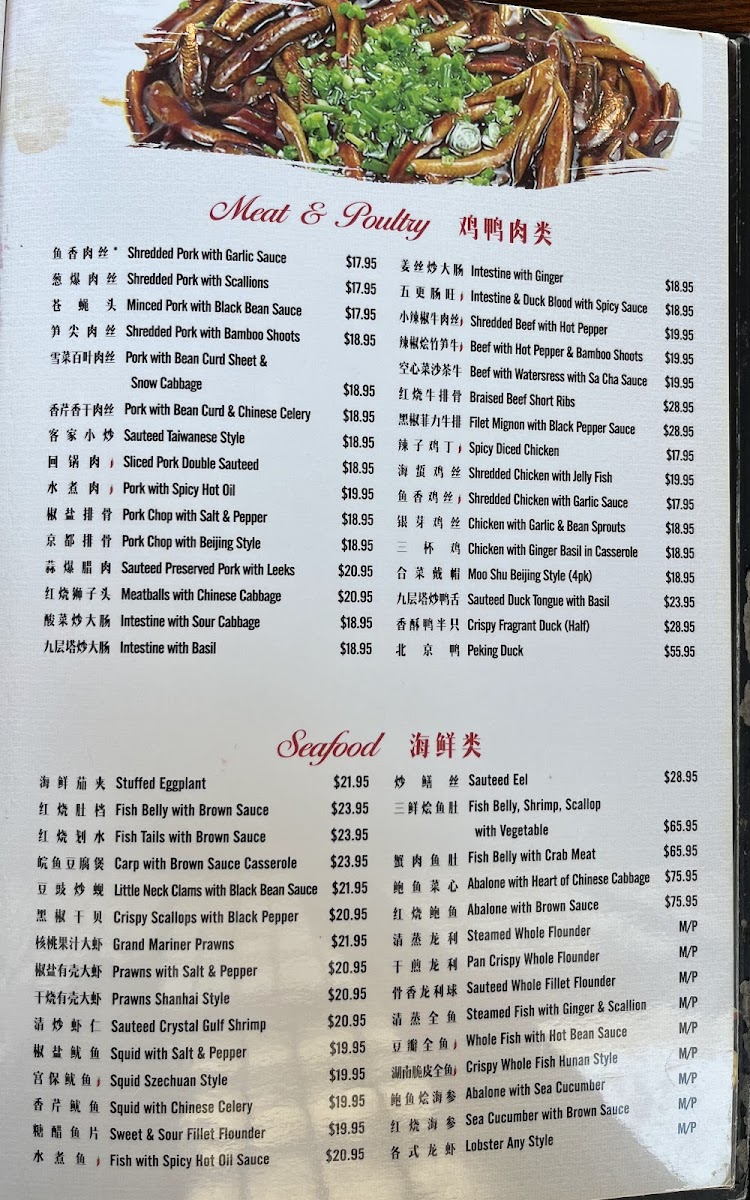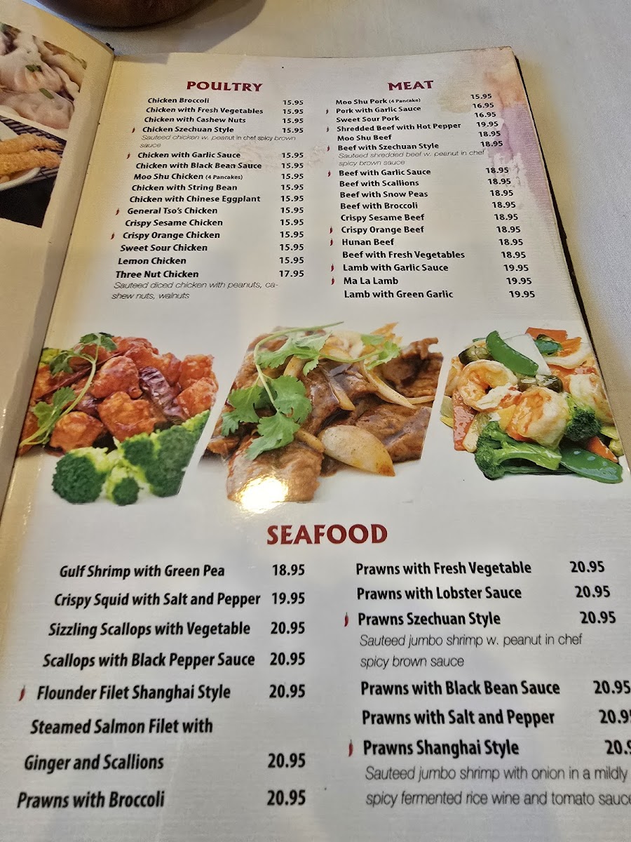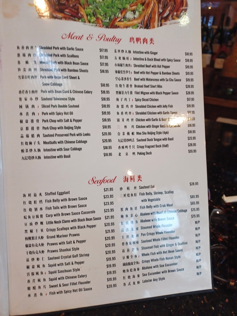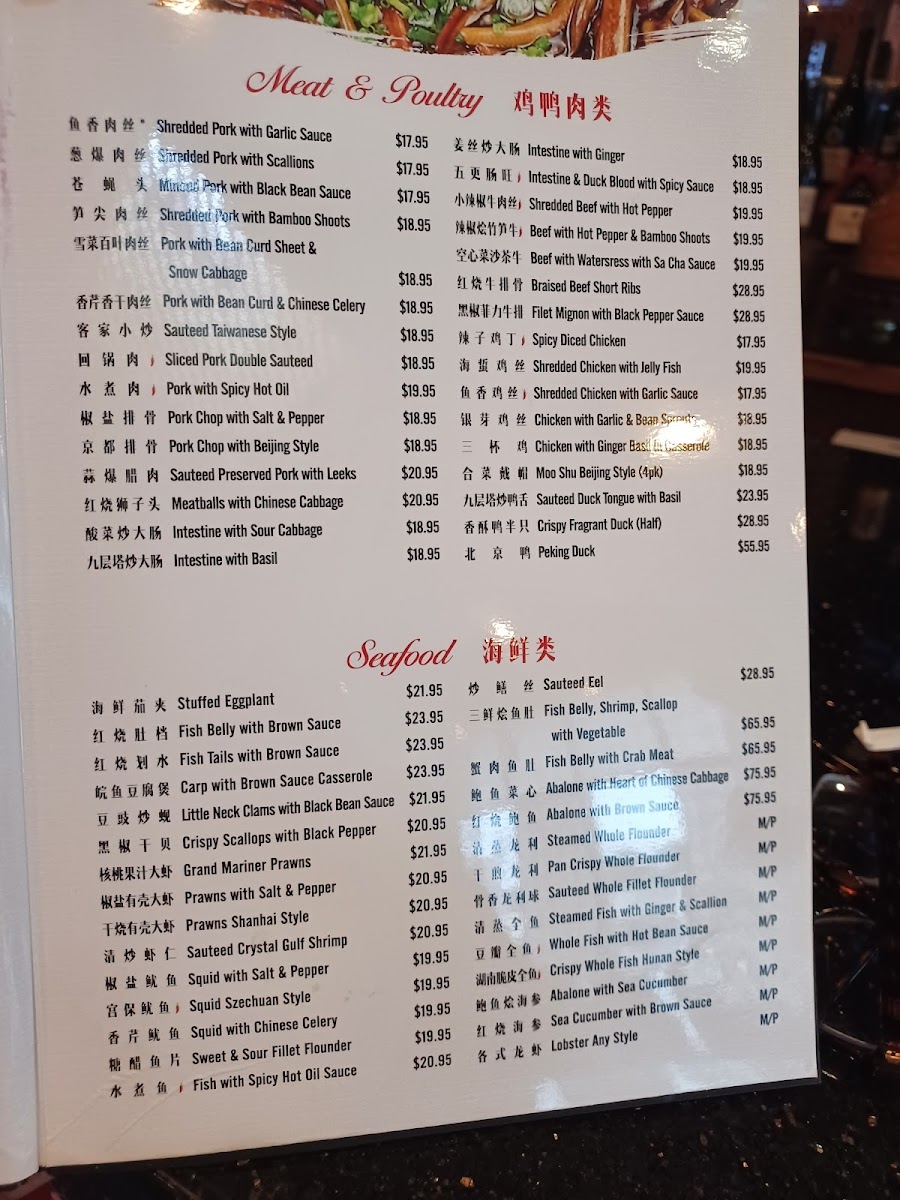 It was quiet as it was late (8:30pm) for dinner on a Wednesday. One of our party spotted something interesting on another table that was not on the menu. We were brought copies of what we were told is their special menu. Most of it was in Chinese. They graciously answered our questions, then accommodated our special order (from the regular menu, but one of us had jus had dental work & required accommodations, which were made). Clean place, friendly, professional staff, delicious food, good prices.